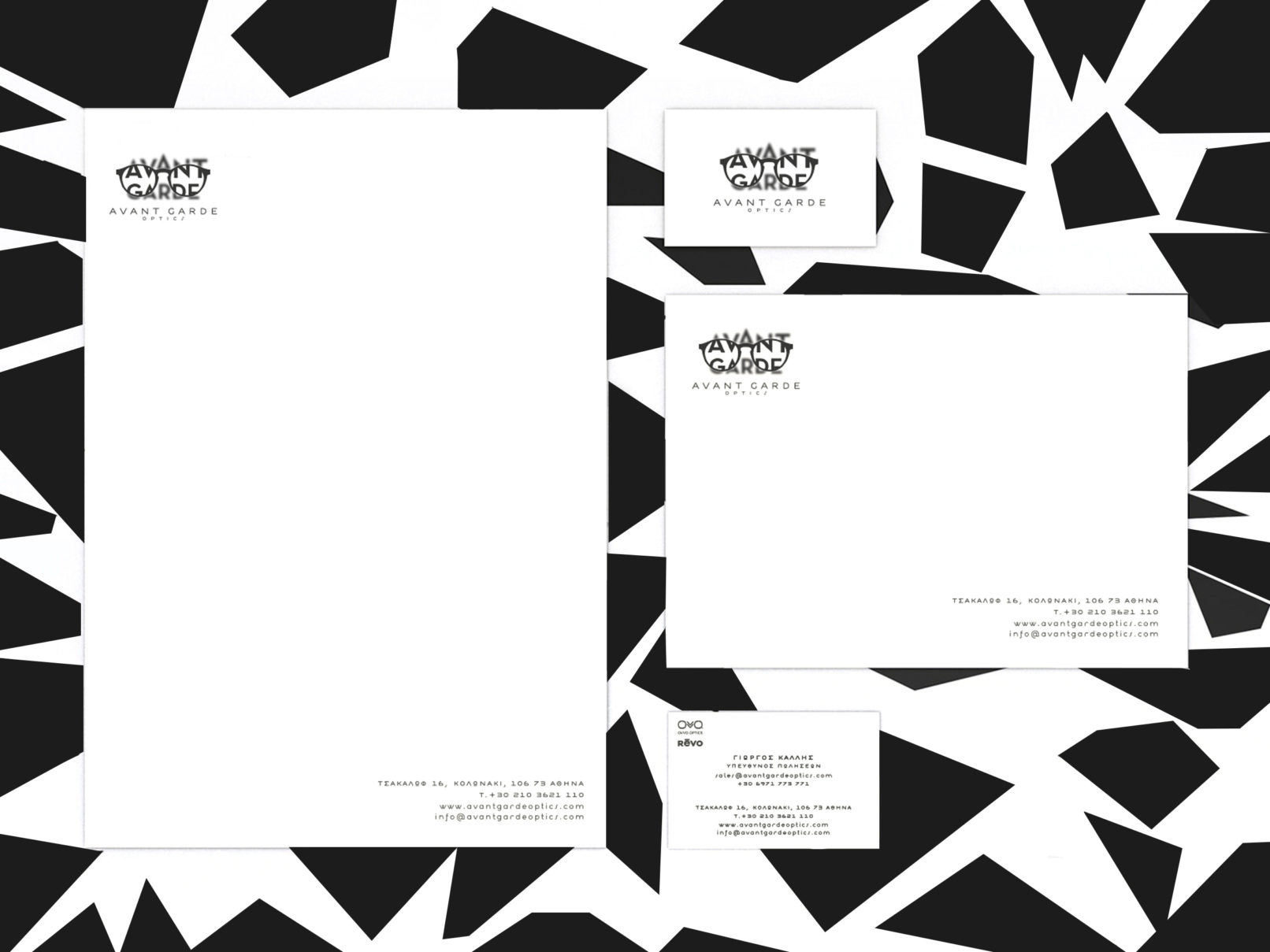 Avant Garde optics is an independent distributor of high-quality eyewear based in Athens, Greece. We created the brand identity, the design of the web page and all the sales peripherals. We used black & white as the main colours of the identity as it is highly motivating and uplifiting and it connotes optimism and confidence.