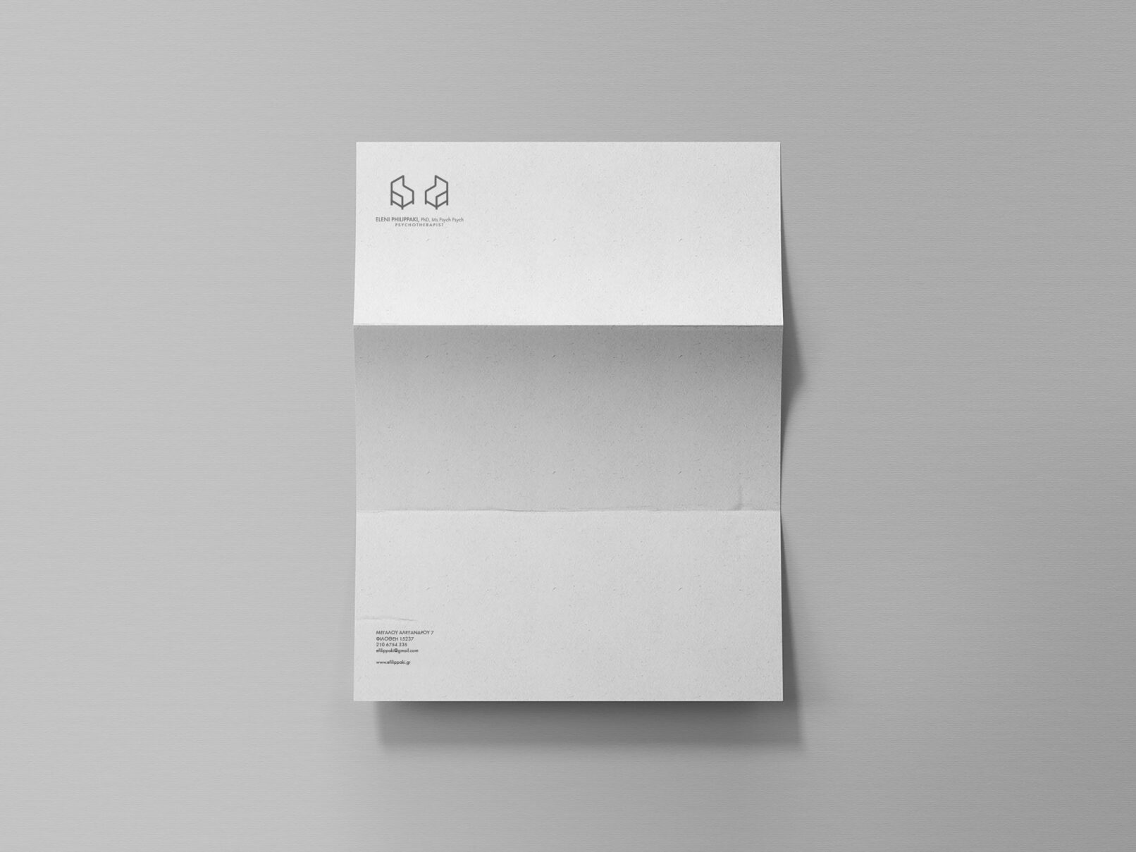 Psychotherapist Dr. Eleni Philippakis, asked us to create a unique logo design as well as branding elements and peripherals. We used an abstract approach as well as a palette of earth grey tones. Our client’s vision was branding that exudes minimalism and clarity, which we developed in our designs.