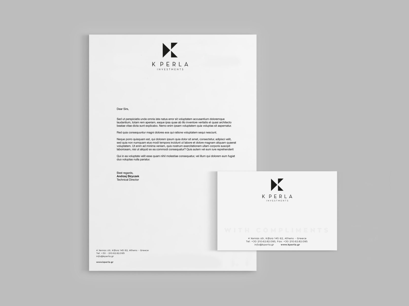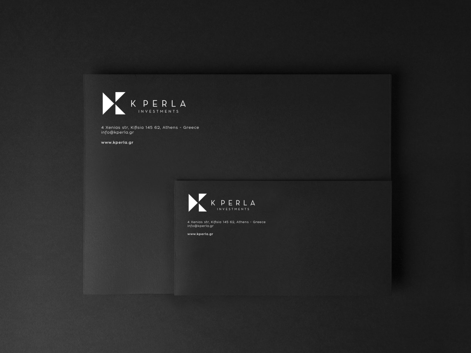 K Perla is a Greek investment company. We created the brand identity, the design of the web page and all the sales peripherals. We used black & white as the main colours of the identity as it is highly motivating and uplifiting and it connotes optimism and confidence.