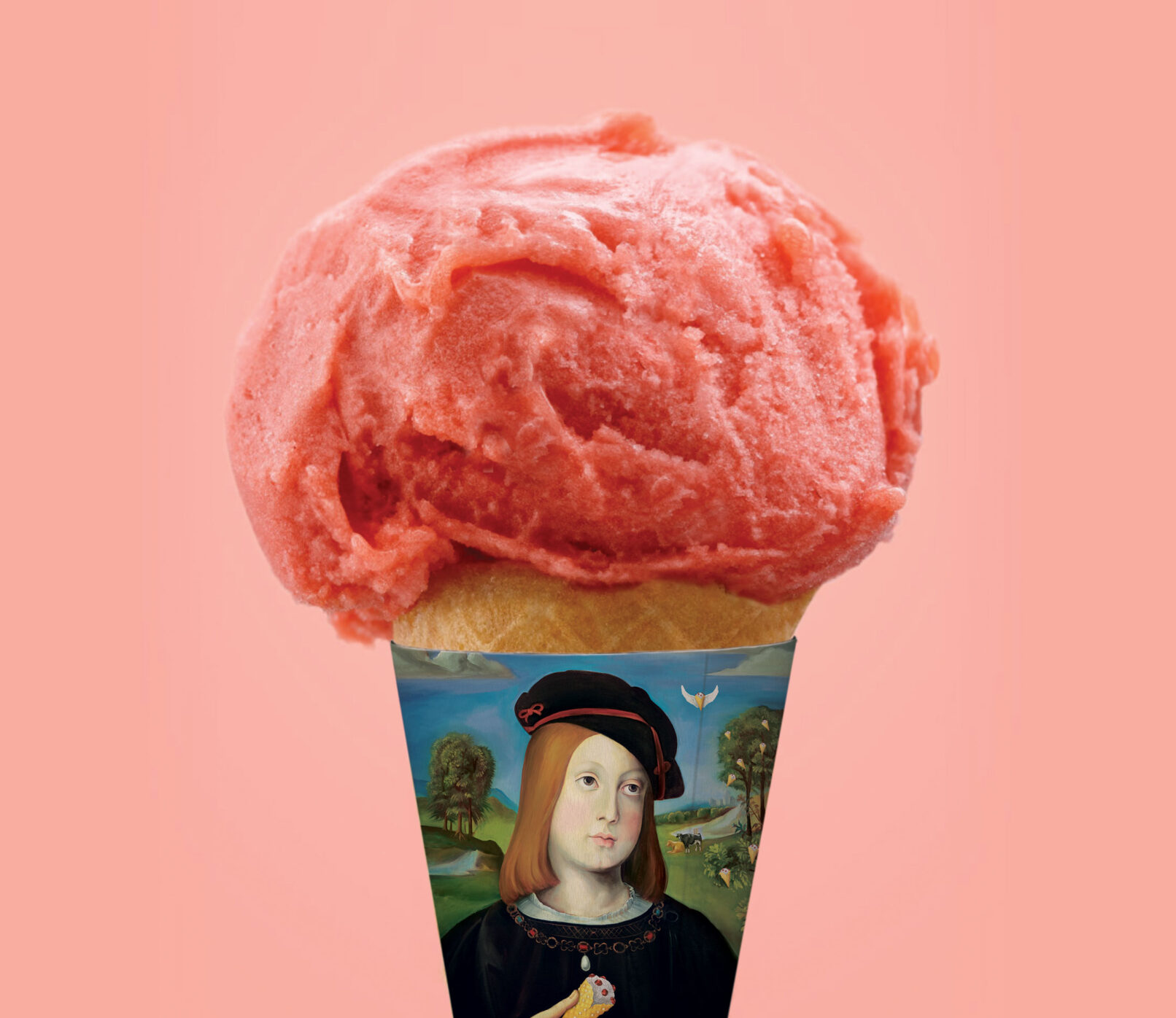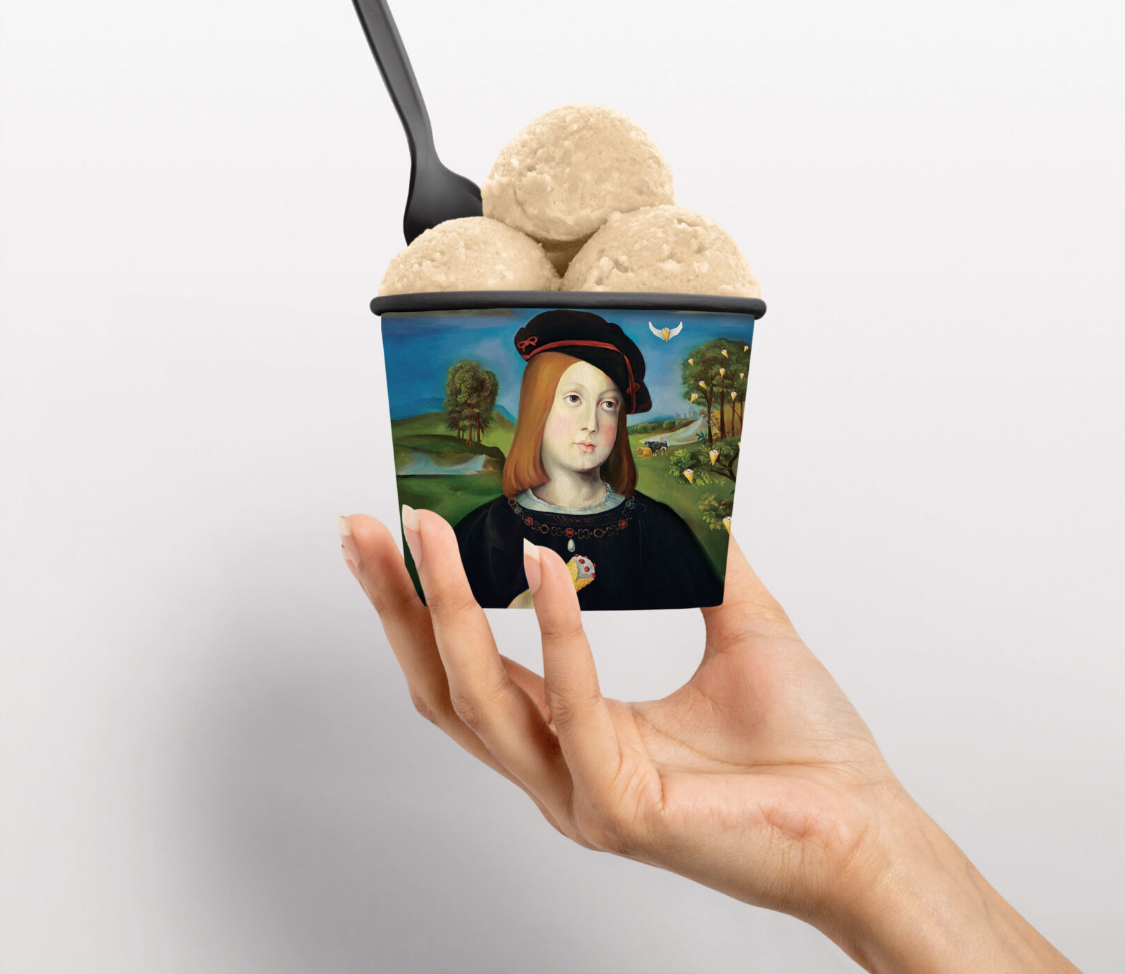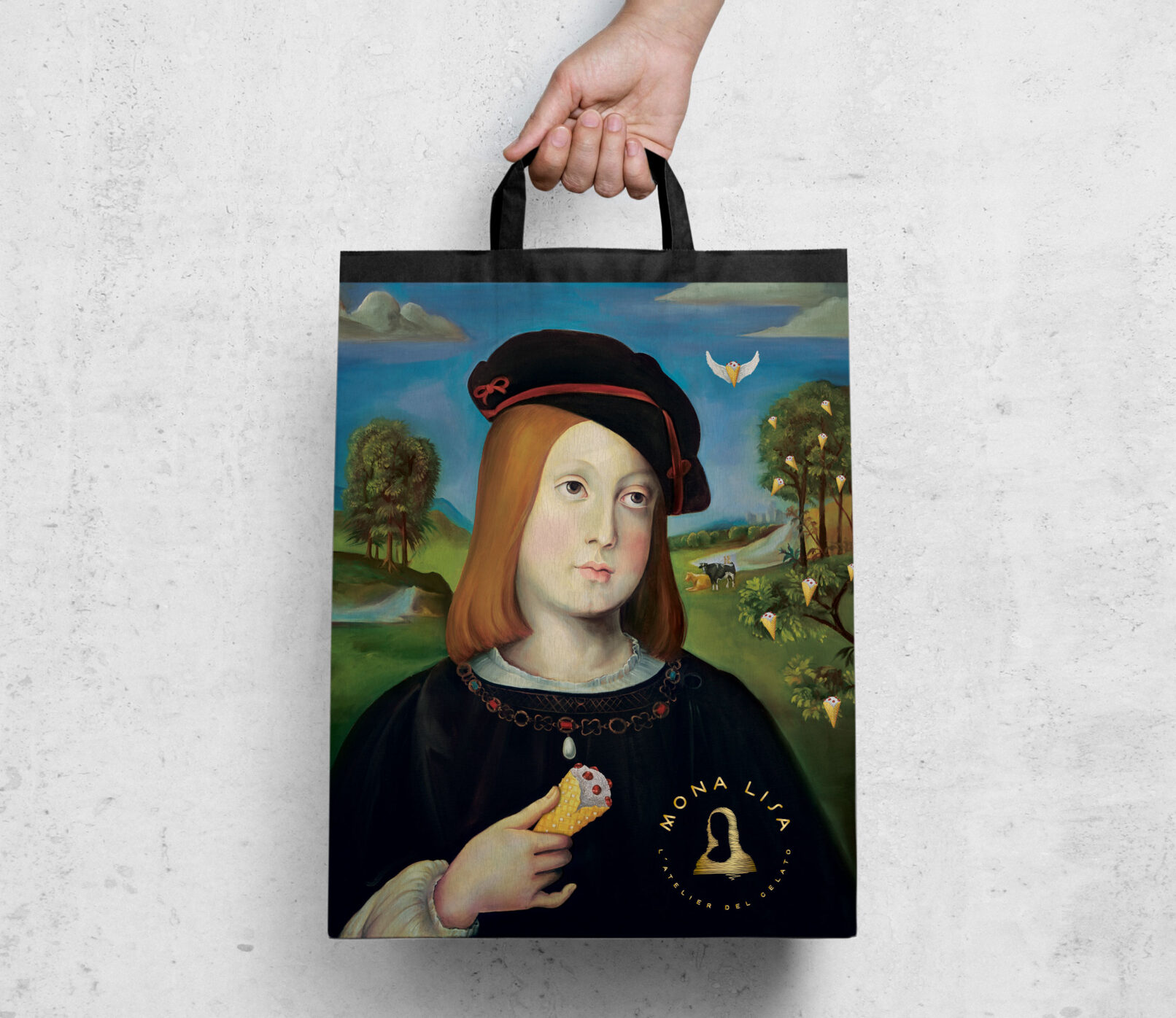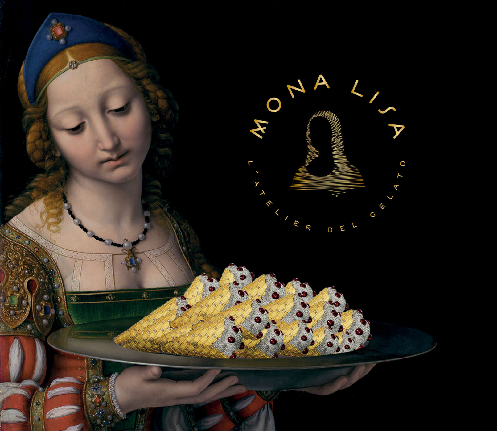 Inspired by the great Renaissance maestro, Leonardo Da Vinci, the branding for Mona Lisa gelato celebrates the Renaissance through the art of both gelato and chocolate. To bring Italian Renaissance to life, we used a colour palette to resemble the gold, the azurite, the malachite, the carbon black and the technique of chiaroscuro of the time. The classic paintings were re-painted, but with a twist: cones of Mona Lisa gelato are an integral part of the painting, making us wonder: Did the people of the Renaissance era really eat ice cream? The packaging, gilded and luxurious, or a reproduction of the paintings, is, itself, a work of art, complementing the exquisite quality of the Mona Lisa gelato and chocolate.