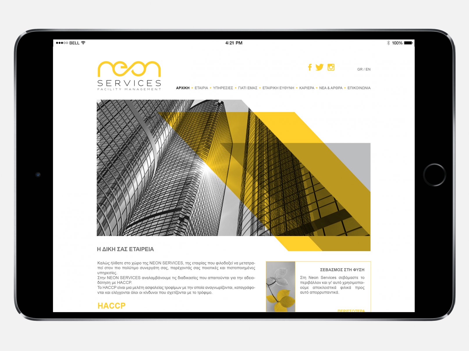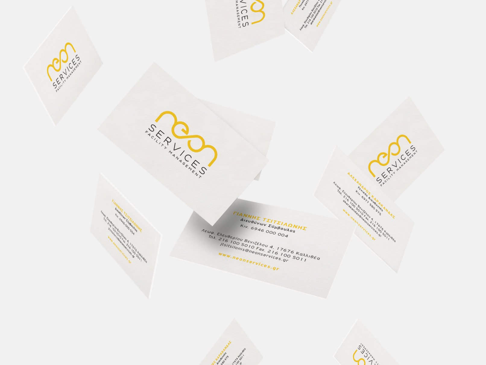 Neon Services is a Greek company that specializes in facility, waste and human resources management. We created the brand identity, the design of the web page and all the sales peripherals. We used yellow as the main colour of the identity as it is highly motivating and uplifiting and it connotes optimism and confidence.